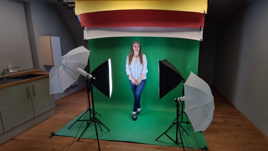And upstairs we have a fully fledged Photo Studio with lights and a wireless controlled background drop down so you can do green screen stuff (don't worry about it). Not to mention red, yellow and white.